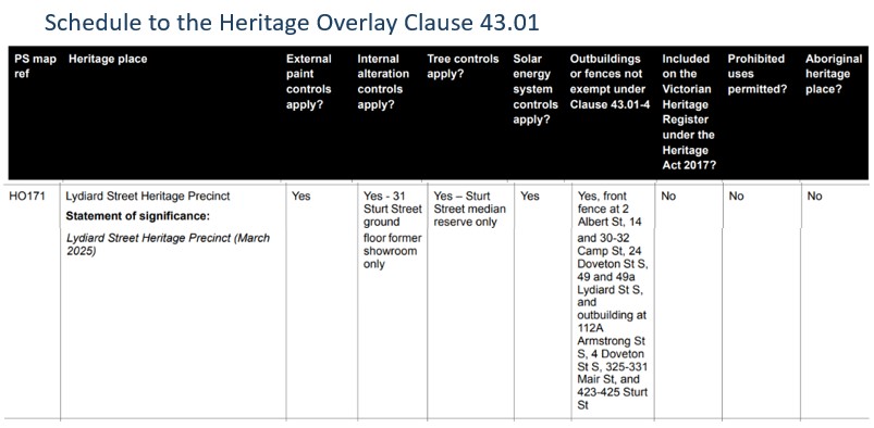 City of Ballarat Officers have prepared a property table with a summary of proposed changes.