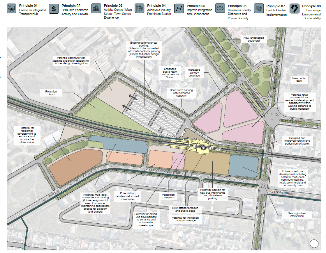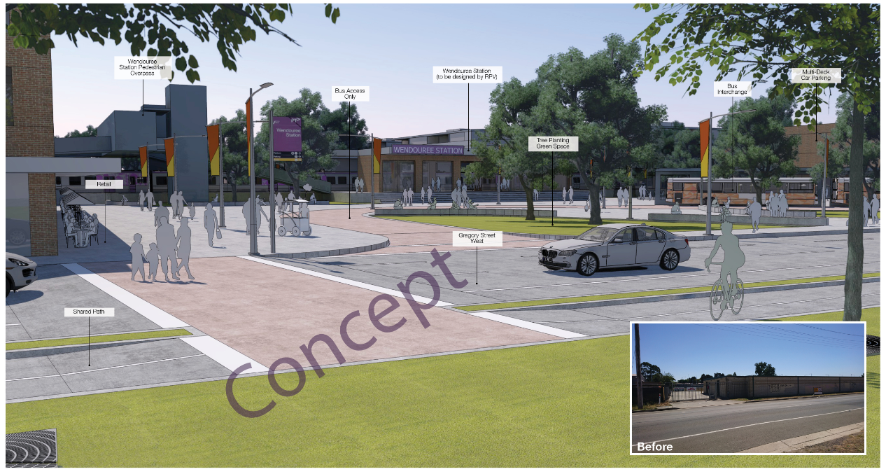 - Introduce a new pedestrian plaza allowing for direct access from Gregory Street West to Wendouree Station